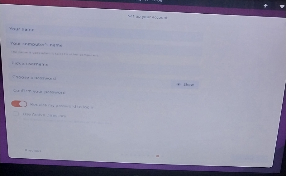 설치도중에 사용자이름 넣는 화면에서 멈춤.