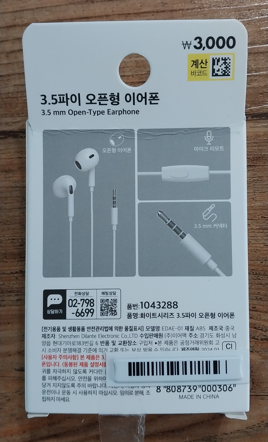 품명: 화이트시리즈 3.5파이 오픈형 이어폰