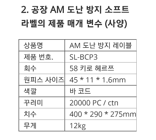 2. 공장 AM 도난 방지 소프트 라벨의 제품 매개 변수 (사양)