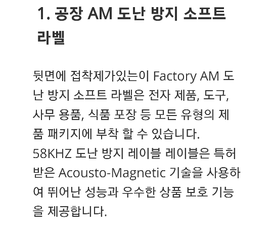 도난방지 라벨 중 58kHz 라벨은 주로 음식점, 옷가게, 전자제품 매장 등에서 사용됩니다. 이 라벨은 RF (Radio Frequency) 기술을 기반으로 하며, 주로 세탁이 가능한 종류와 외부 레이블 형태로 제공됩니다. 이 라벨은 제품에 부착되어 있고, 매장 출입구에 설치된 감지기에서 활성화되어 라벨을 감지하고 경고음을 울리게 됩니다. 이는 상점 주인들이 상품 도난을 방지하고 재고 관리를 효과적으로 할 수 있도록 도와줍니다