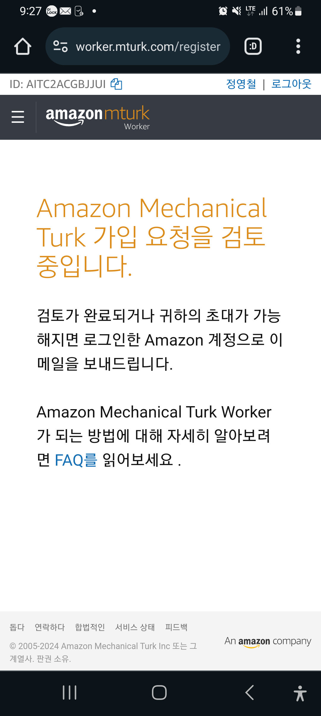 신원 확인 절차를 시작하면 MTurk에서 작업하기 전에 신원을 성공적으로 확인해야 합니다. 자동 신원 확인에 실패하면 수동 검토를 위해 신원 문서를 업로드하여 결정에 이의를 제기하는 방법에 대한 지침이 표시됩니다. 신원을 확인할 수 없는 근로자는 MTurk 마켓플레이스에 참여할 수 없습니다.