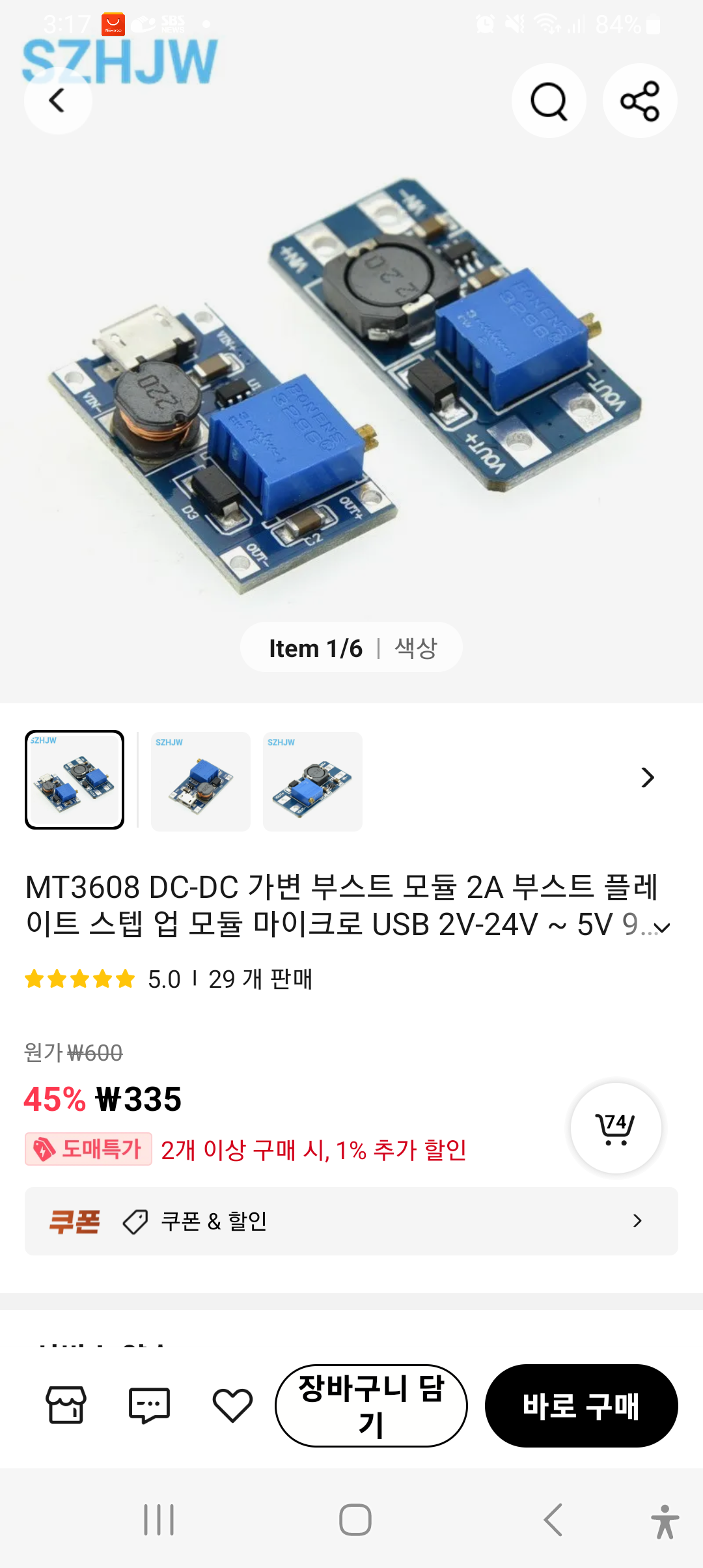 3.7V배터리를 12V이상으로 승압하려고 하나 구입