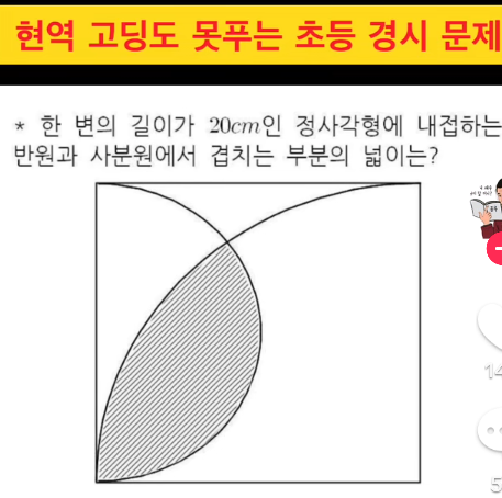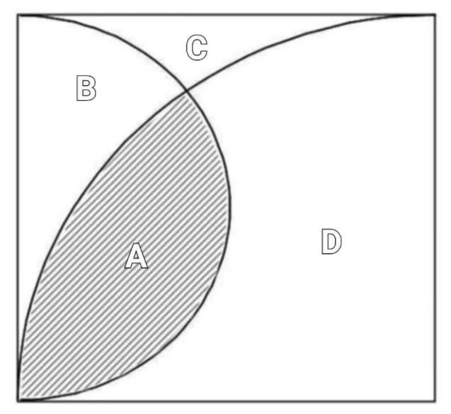 B+C=사각형의 면적-큰 1/4 원의 면적