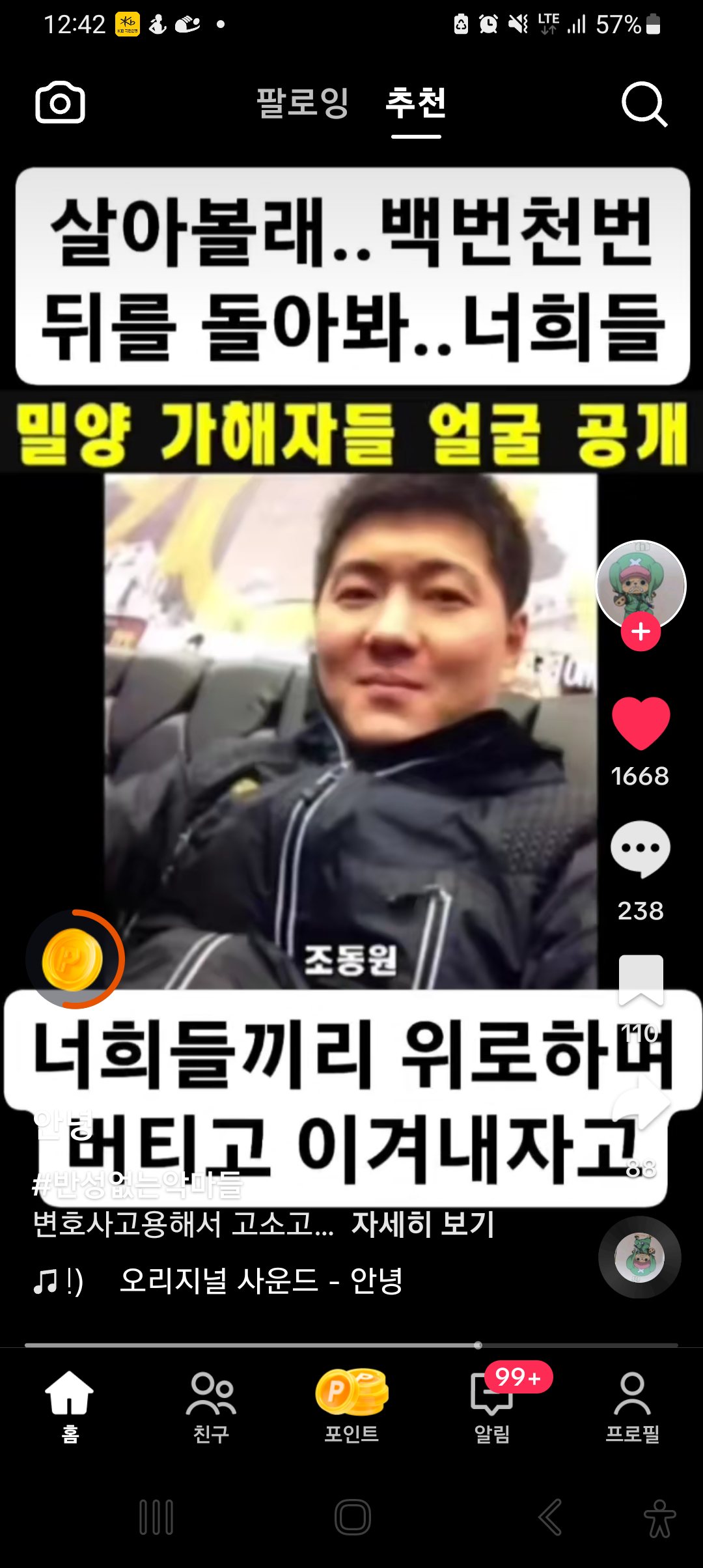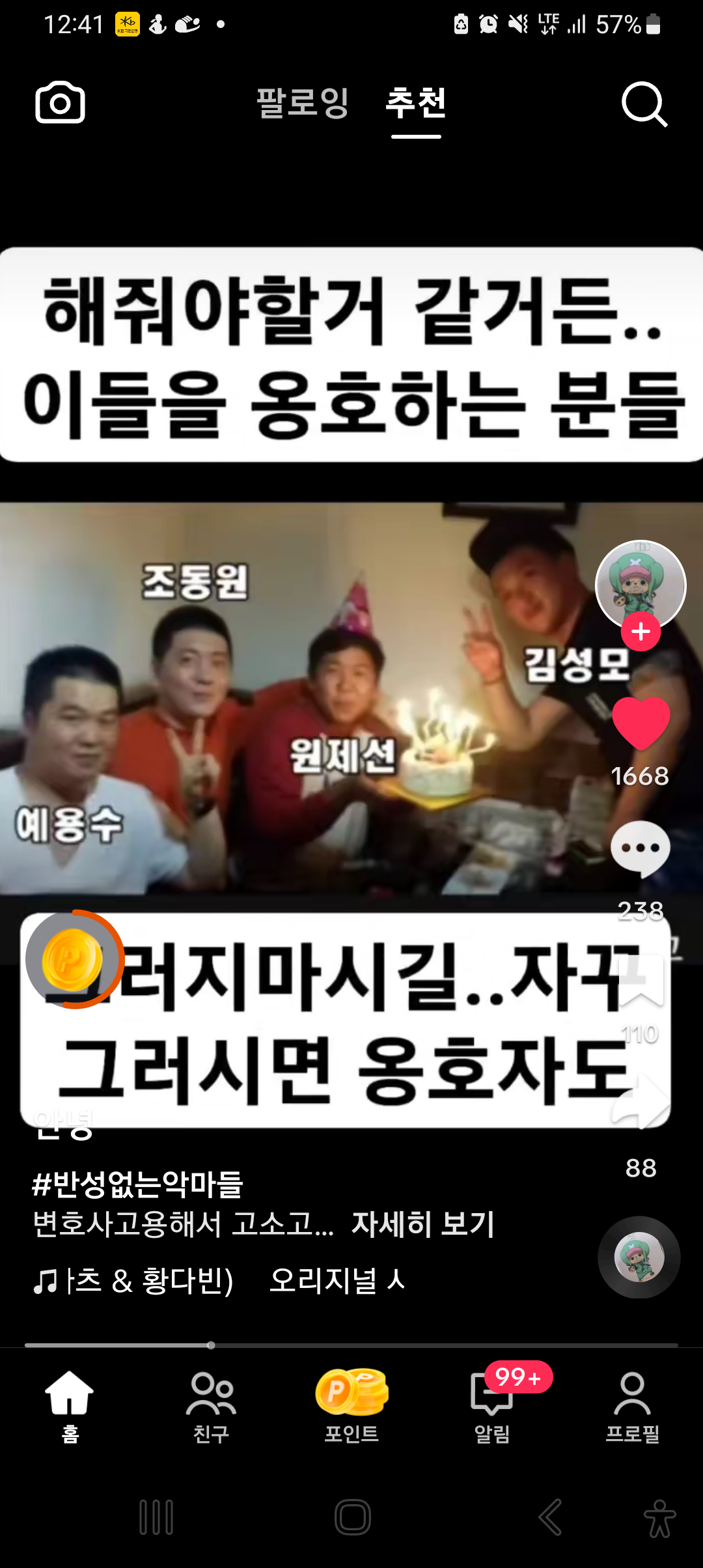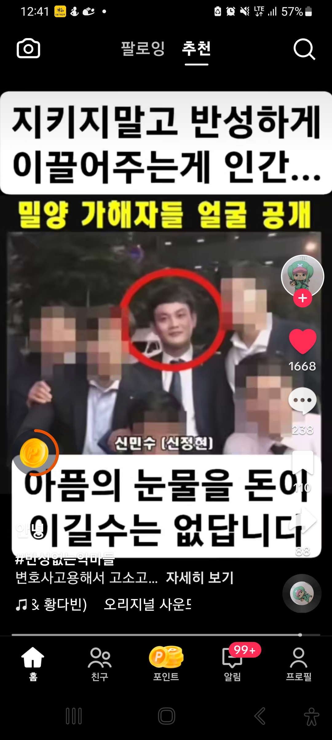 좋아요 1686개, 댓글 238개가 있습니다. "#반성없는악마들 변호사고용해서 고소고발 방통위에도 신고,,,,정신못차리네 돈이 그렇게많니,,,그 돈 차라리 익명으로 어려운곳들,,,돕고 너희는 뒤돌아