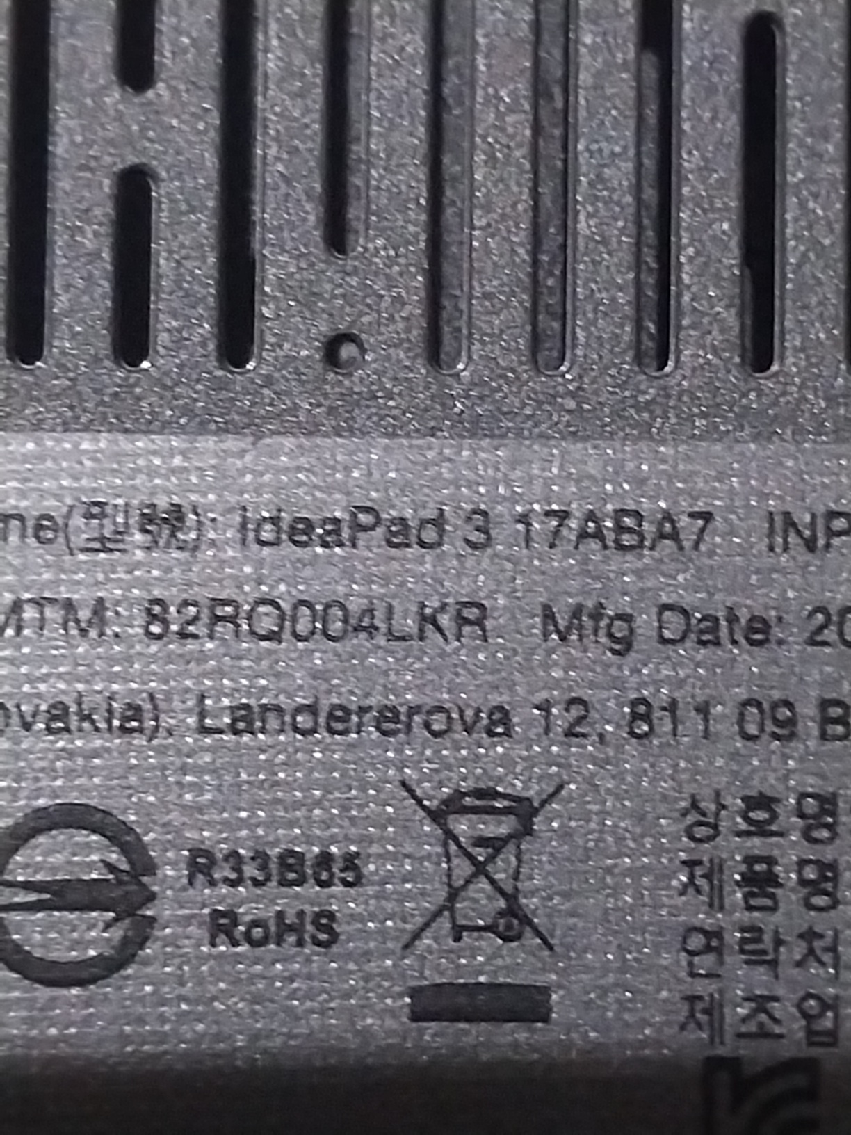 (윈도우 설치된 노트북은 시리얼이, 윈도우정보에서 확인 가능한것도 있음. 바닥에 시리얼은 노트북 시리얼이 아님