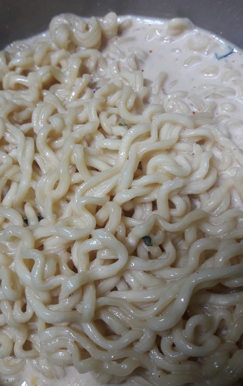 다음번에는 라면만 삶아서, 국물 버리고, 우유 400ml를 넣어봐야겠다.