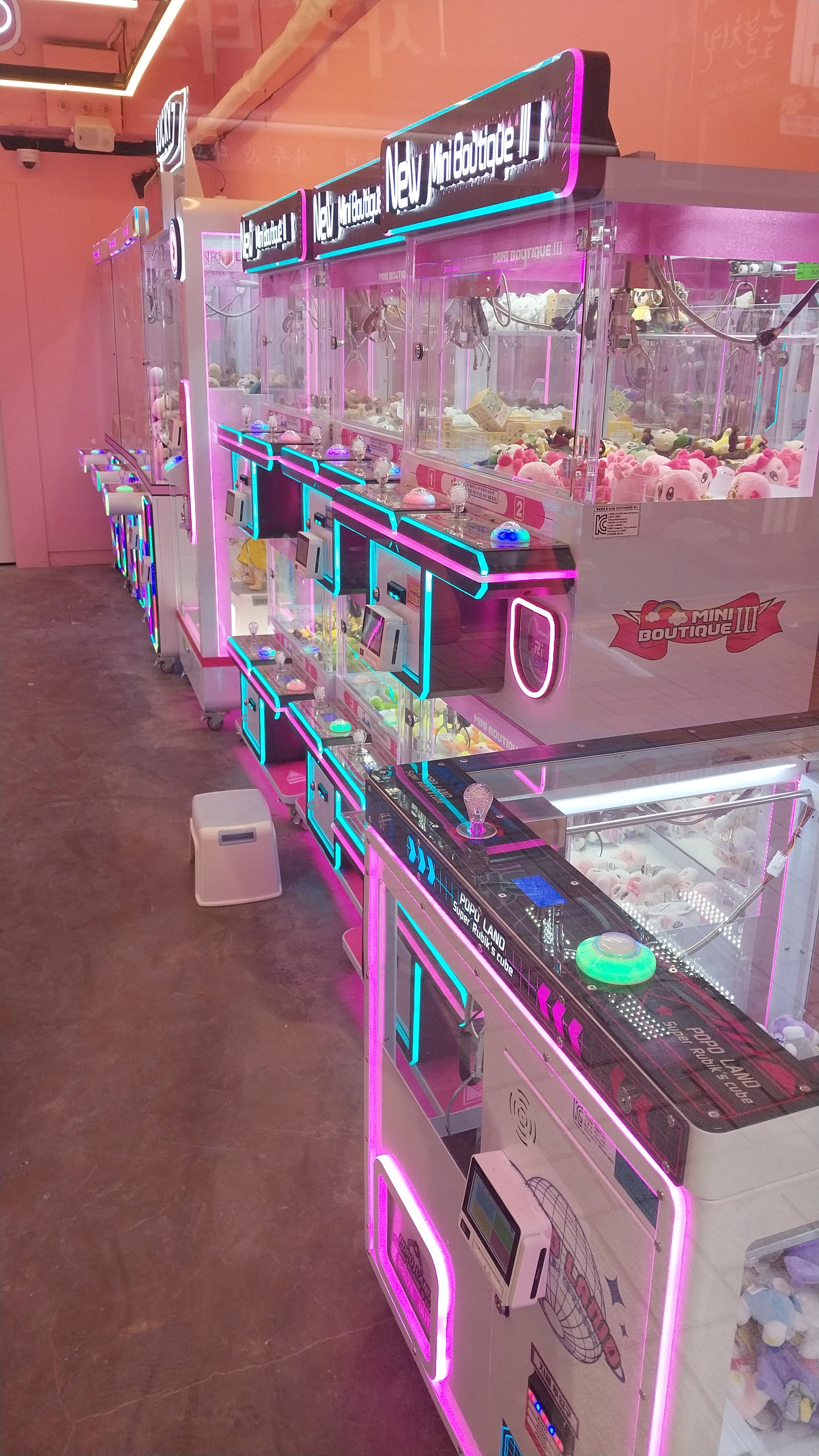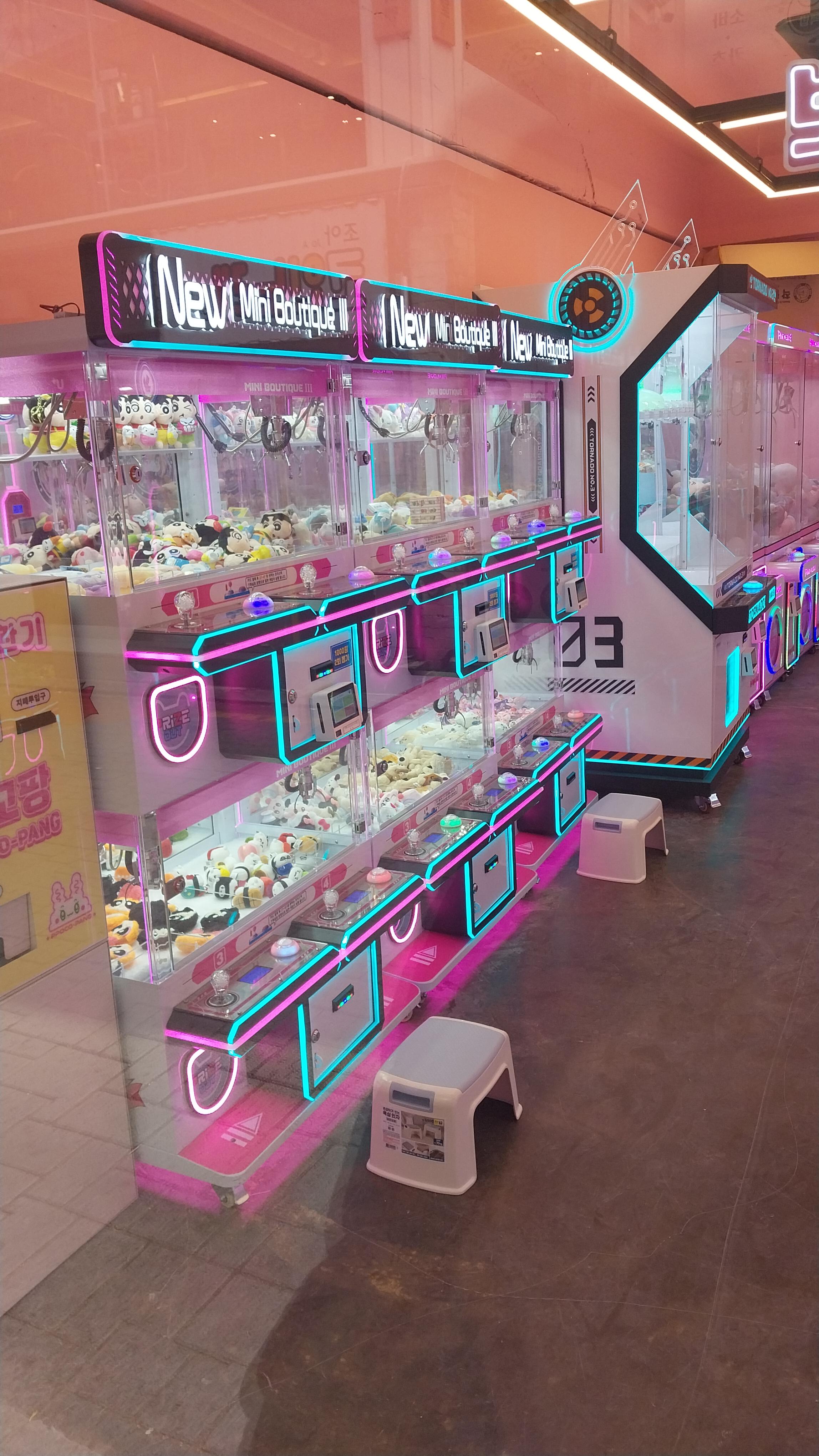 다양한 뽑기 기계들이 있는 가게로, 돈을 넣고 원하는 물건이 나올 때까지 뽑기를 할 수 있는 곳이야.