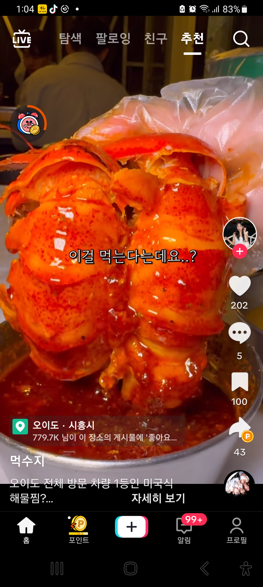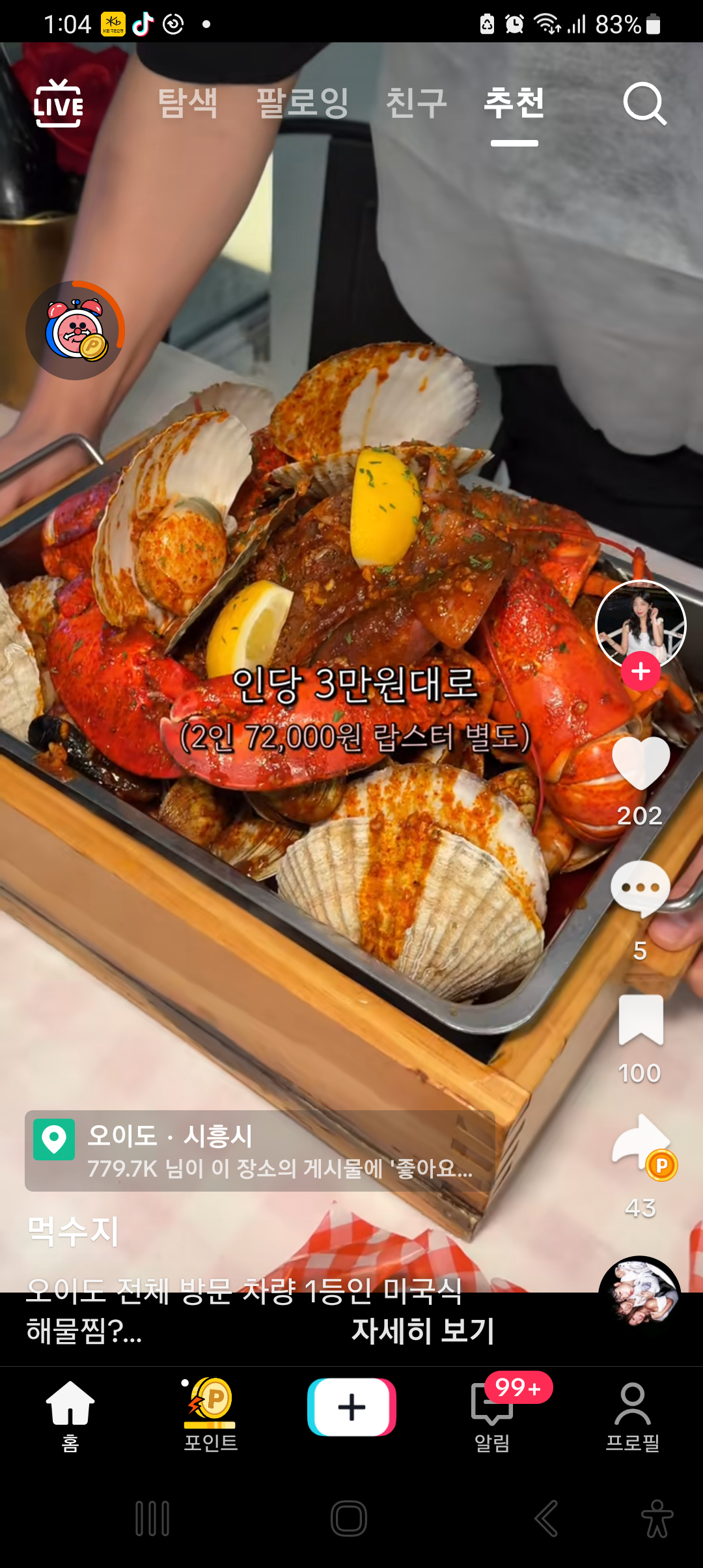 틱톡을 보다보니, 맛있어보이는 식당이 나온다.