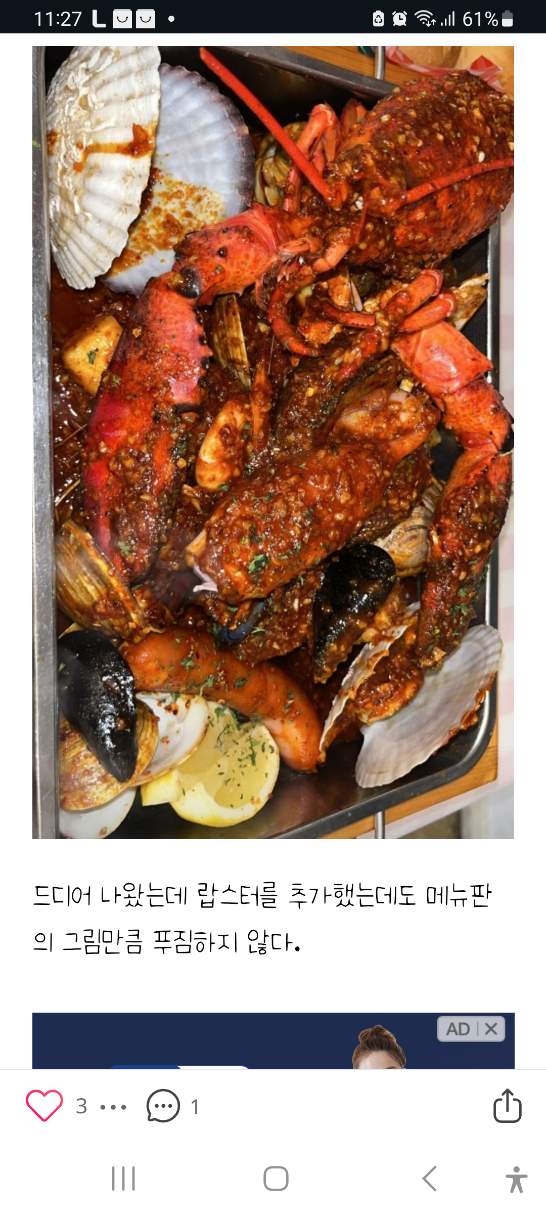 광고에서는 무지막지한 새우(?)를 보여주고, 막상 가보면, 주먹보다 작은 새우....