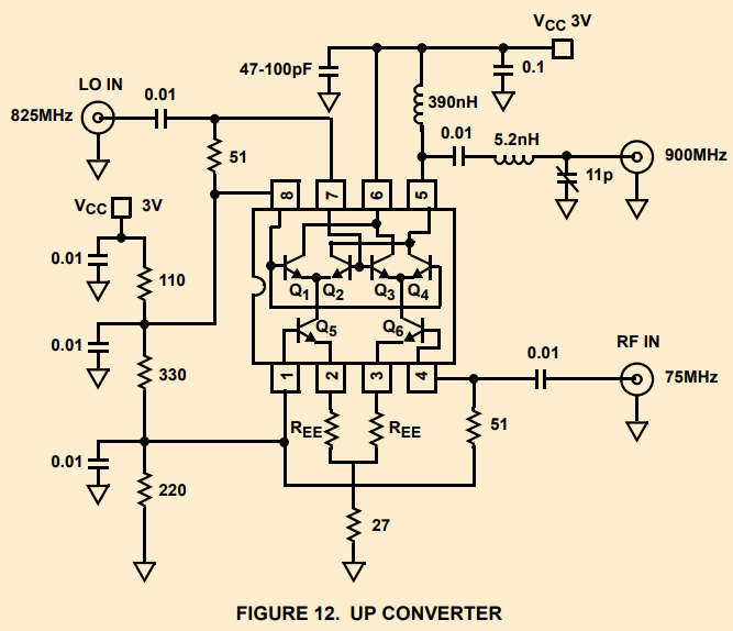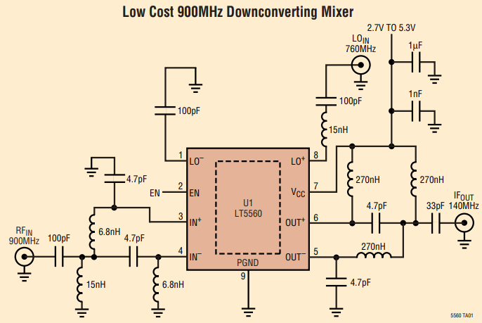 MMIC Mixer IIP3 = 15 dBm, Gc = −0.5 dB @ 450 MHz,