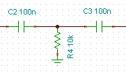 R → 그라운드로 신호를 바이패스하면서 저주파 성분 제거