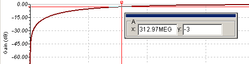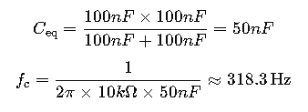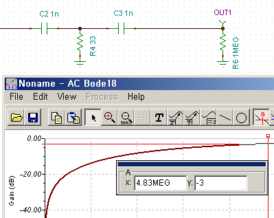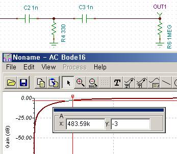 차단 주파수는 약 318Hz로, 318Hz 이상의 고주파 성분만 출력됩니다.