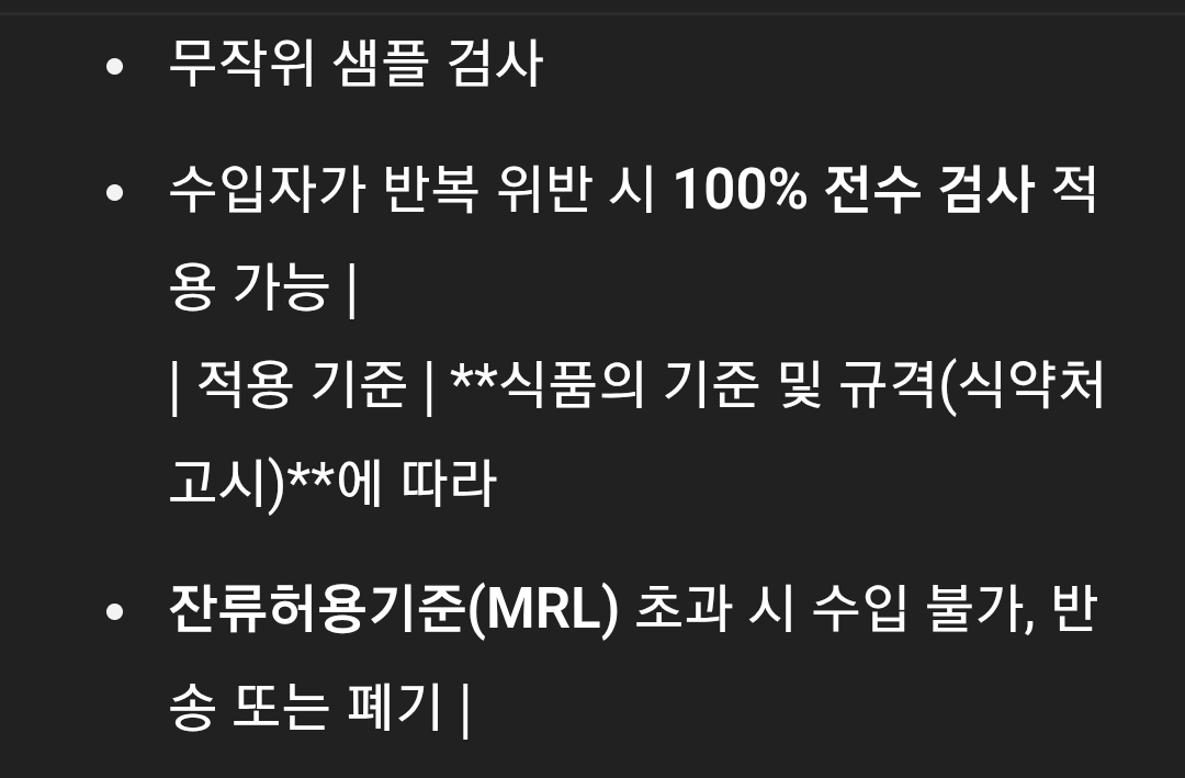 방부제나 농약 기준치 초과검사는 수시로 진행되고 있다.