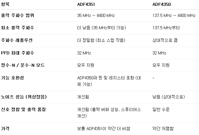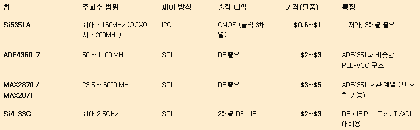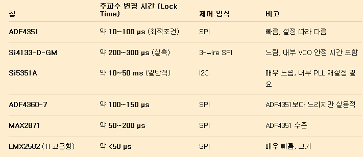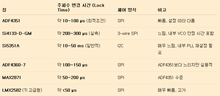 - 주파수 출력범위(200MHz)가 매우 좁음