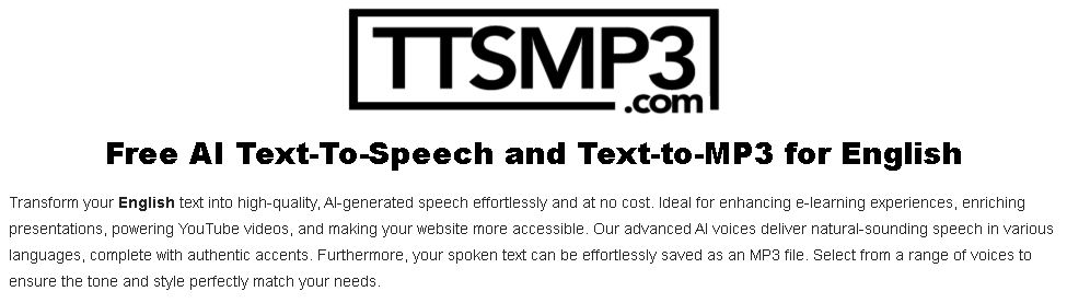Free AI Text-To-Speech for English & MP3 Download | ttsMP3.com