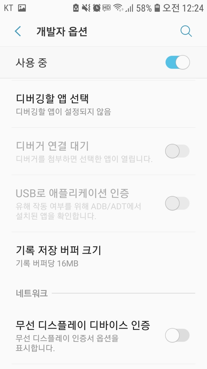 다시 설정메뉴 처음으로 가면, 맨 밑에서 개발자 옵션 메뉴가 보일것이다.