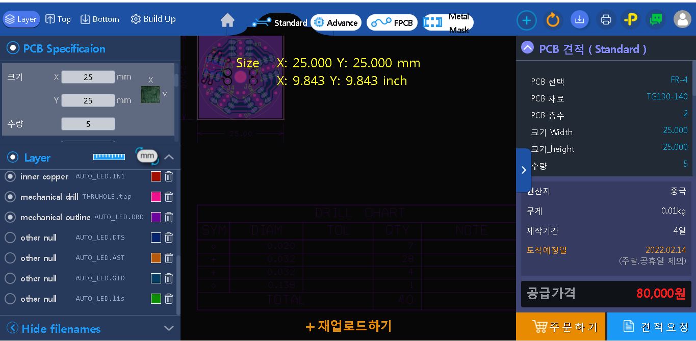 온라인 무료거버뷰어제공 및 PCB가격 실시간 제공, FR-4, Metal PCB, Rogers PCB, 메탈마스크