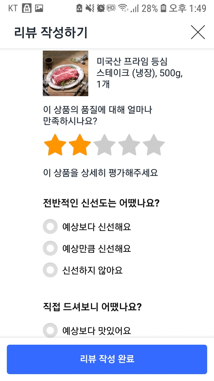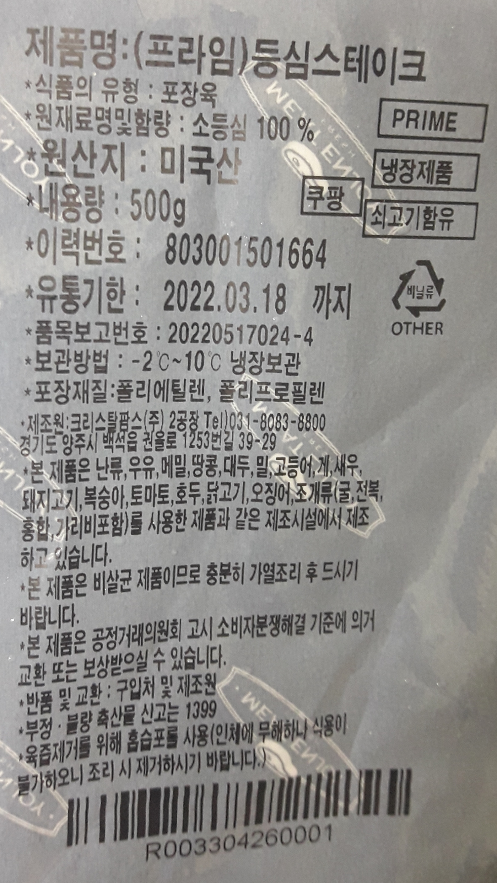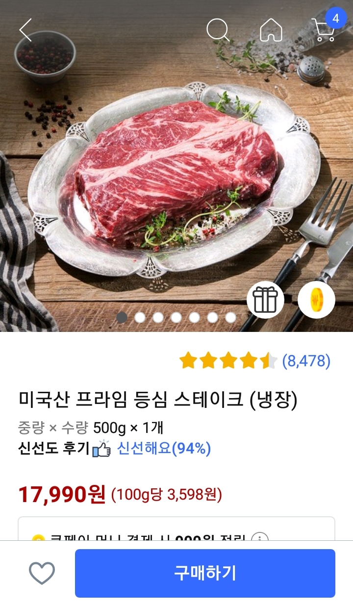 미국산 프라임 등심 스테이크(냉장)