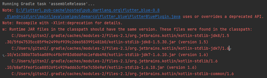 빨간글씨(?)는 있지만, APK파일 생성은 되었다.