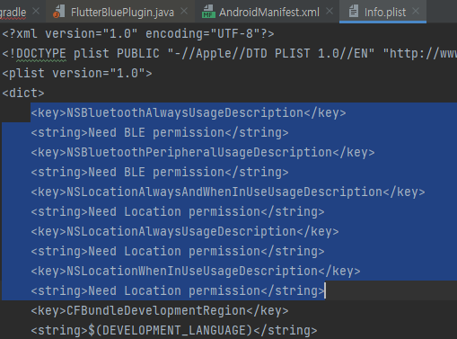 <key>NSBluetoothAlwaysUsageDescription</key>
