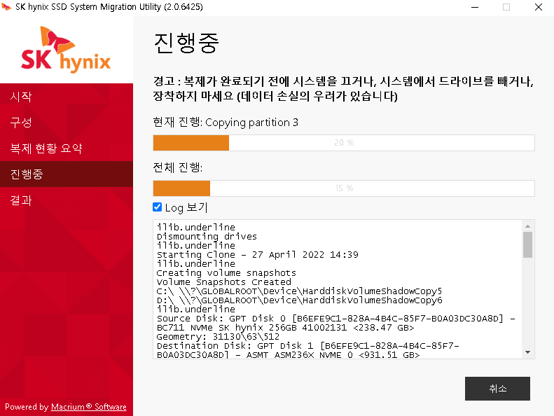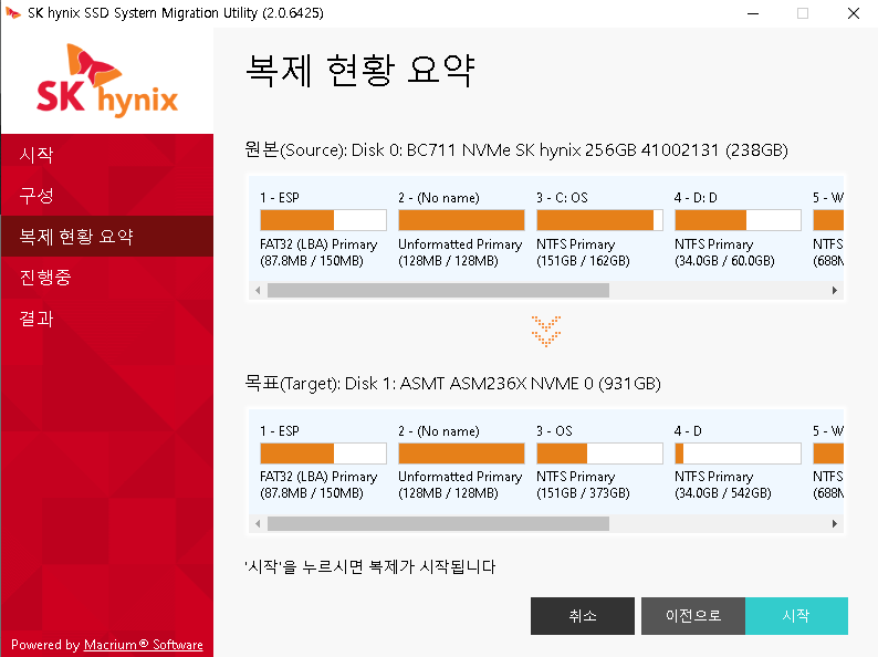 복사는 잘되었고, 부팅도 잘되고, 설정값들도 모두 동일하게 잘 작동하는듯하다.