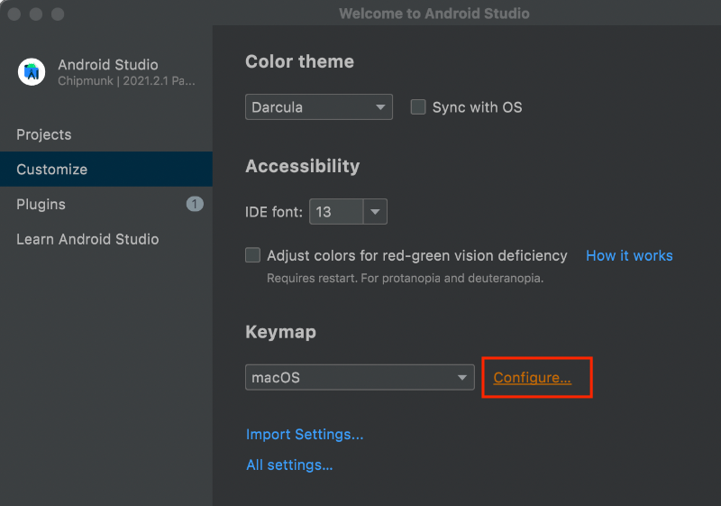 • Android Studio at /Volumes/Android Studio - Chipmunk | 2021.2.1 Patch