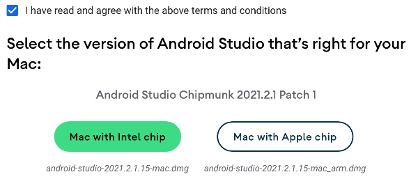 ✗ Android Studio not found at /Volumes/Android Studio - Chipmunk | 2021.2.1