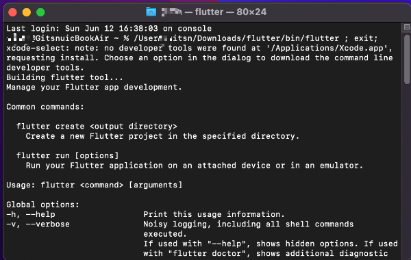 testpc1@GBookAir ~ % /Users/git/Downloads/flutter/bin/flutter ; exit;