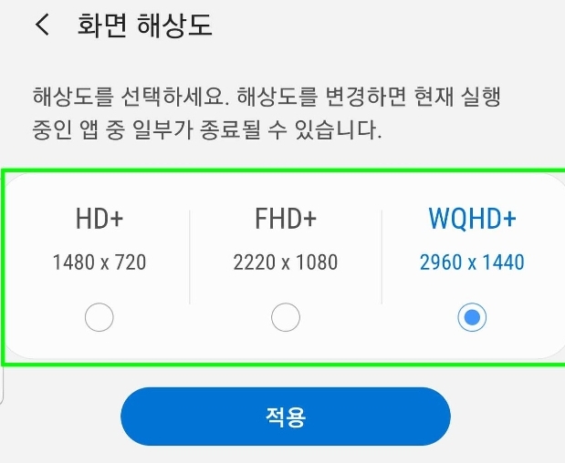 2022년, 최근 안드로이드 스마트폰은 화면해상도 변경이 가능한 종류가 있습니다.