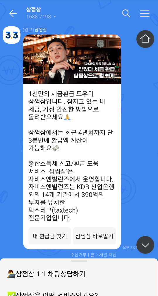 1천만의 세금환급 도우미 삼쩜삼입니다. 잠자고 있는 내 세금, 가장 안전한 방법으로 돌려받으세요🙏