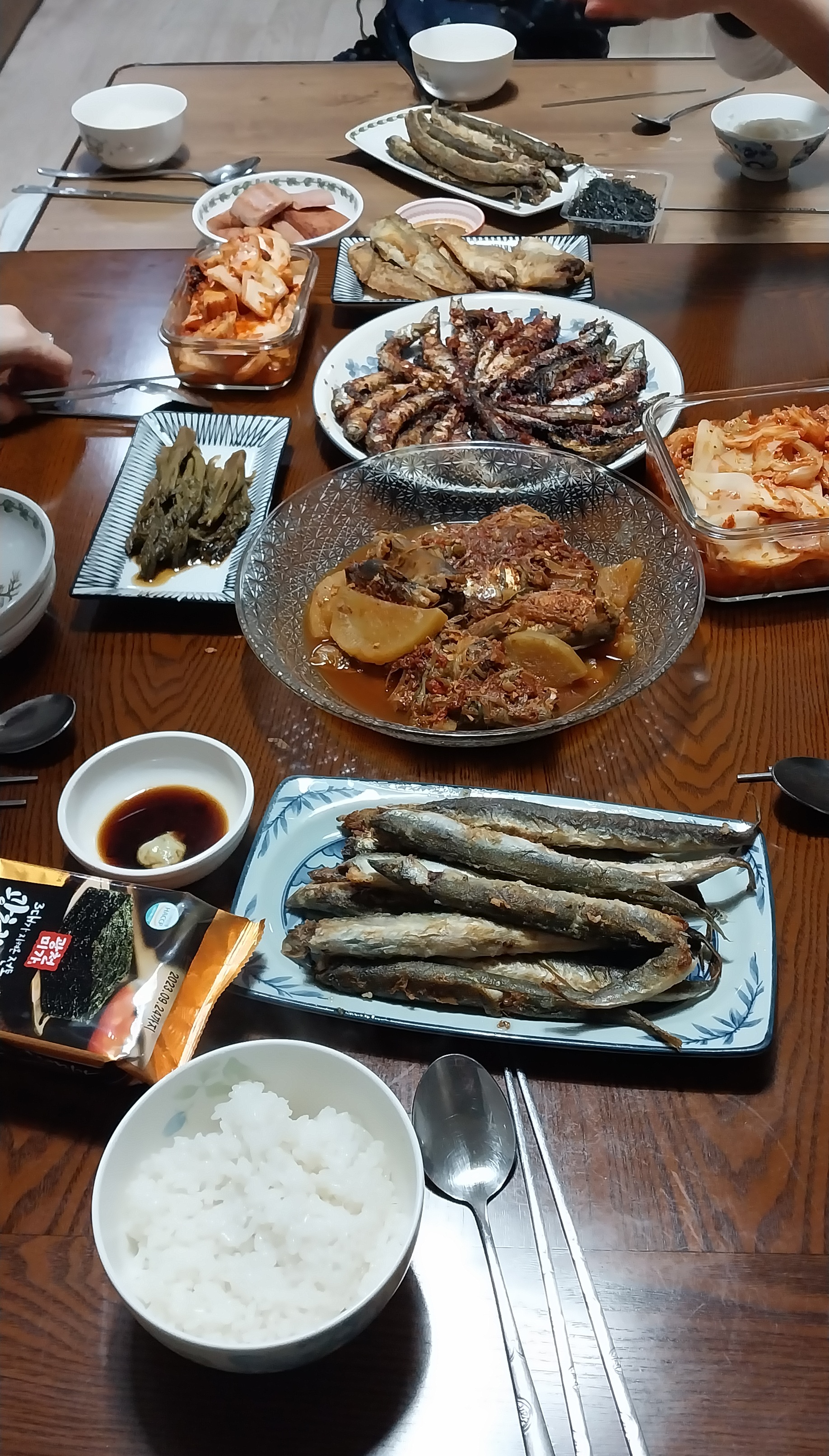 도루묵 튀김, 도루묵 무우 찜, 양미리 튀김, 열빙어 등...