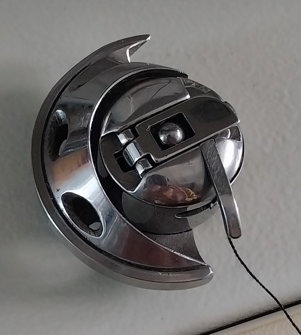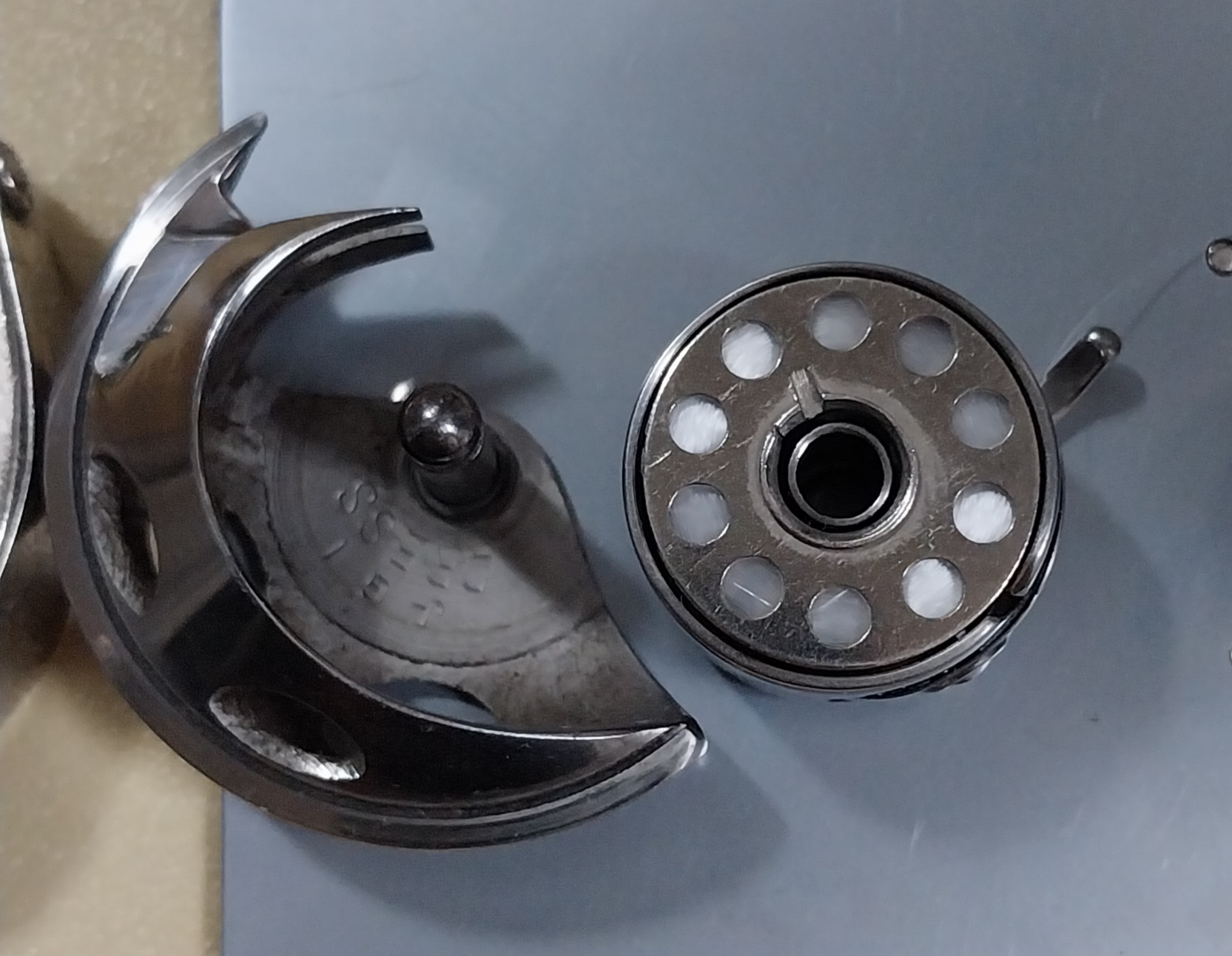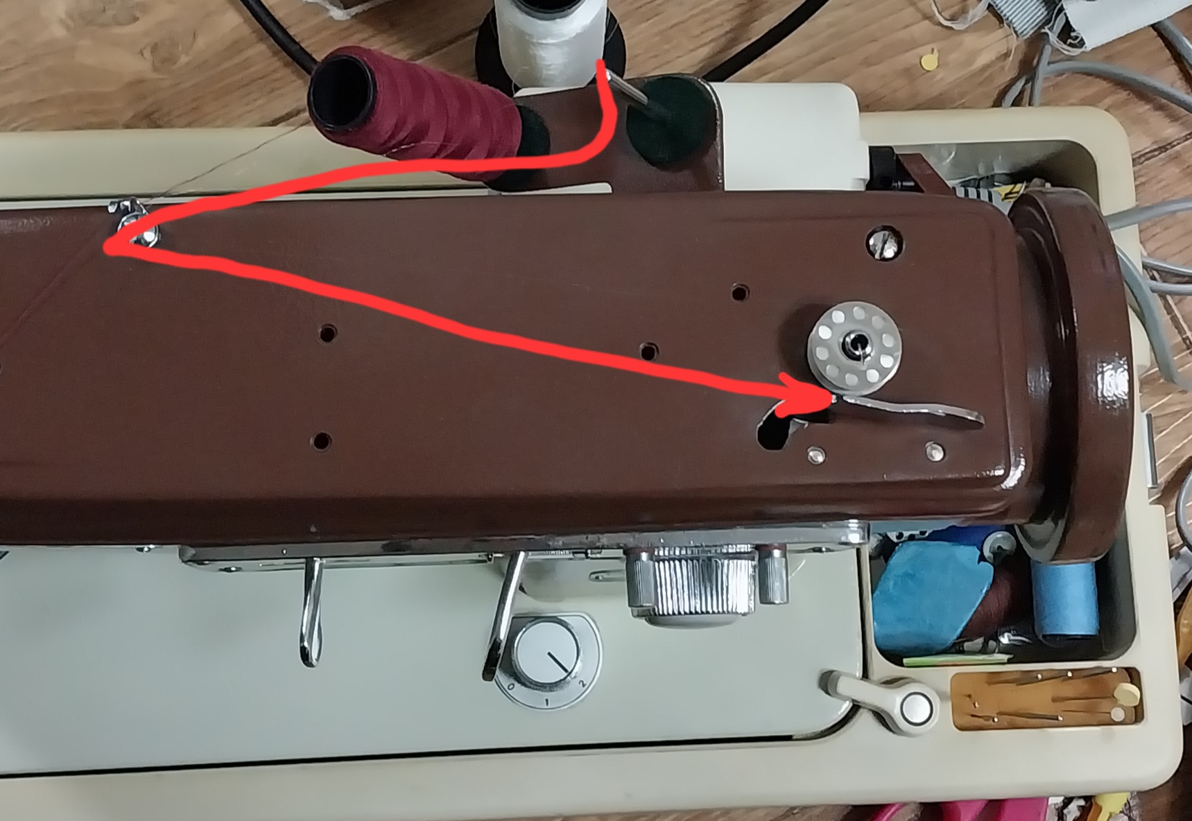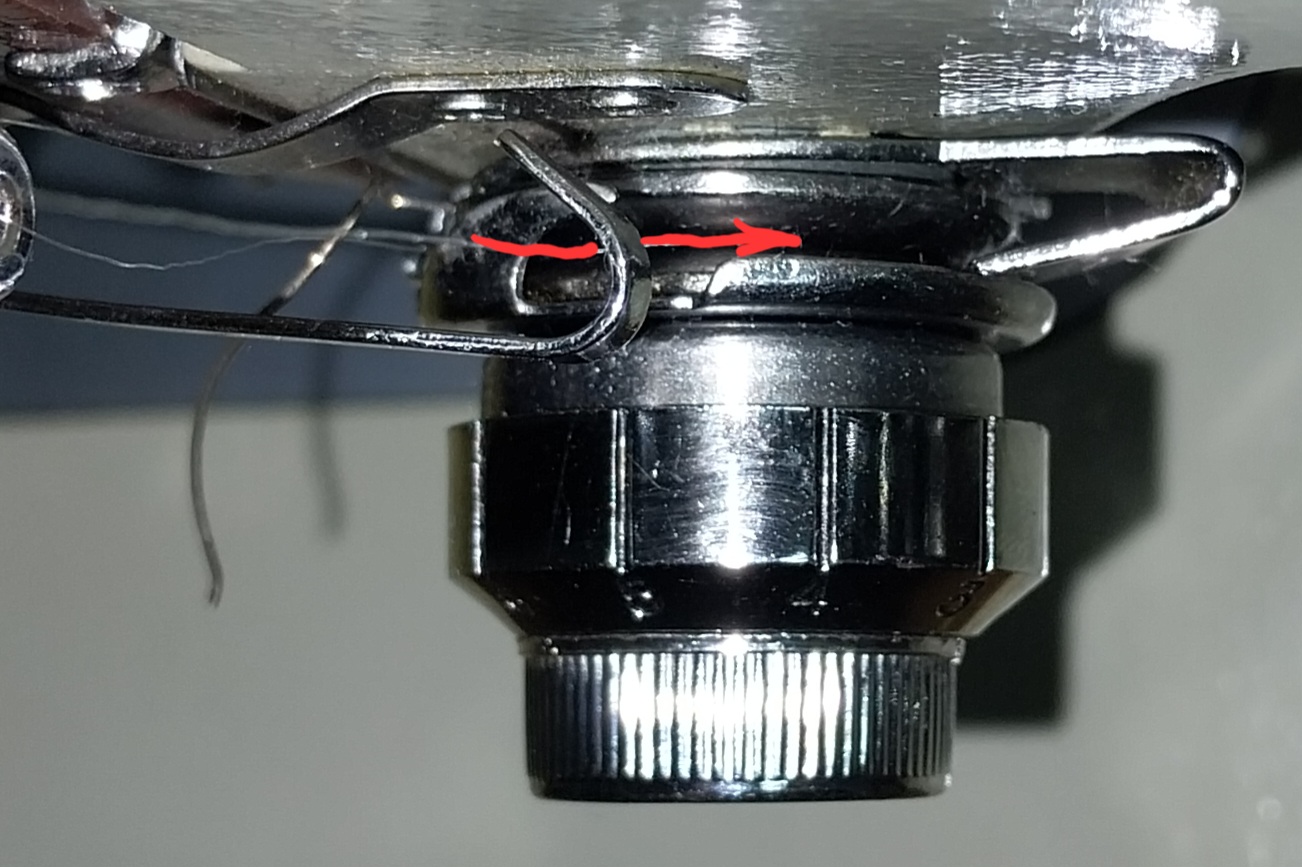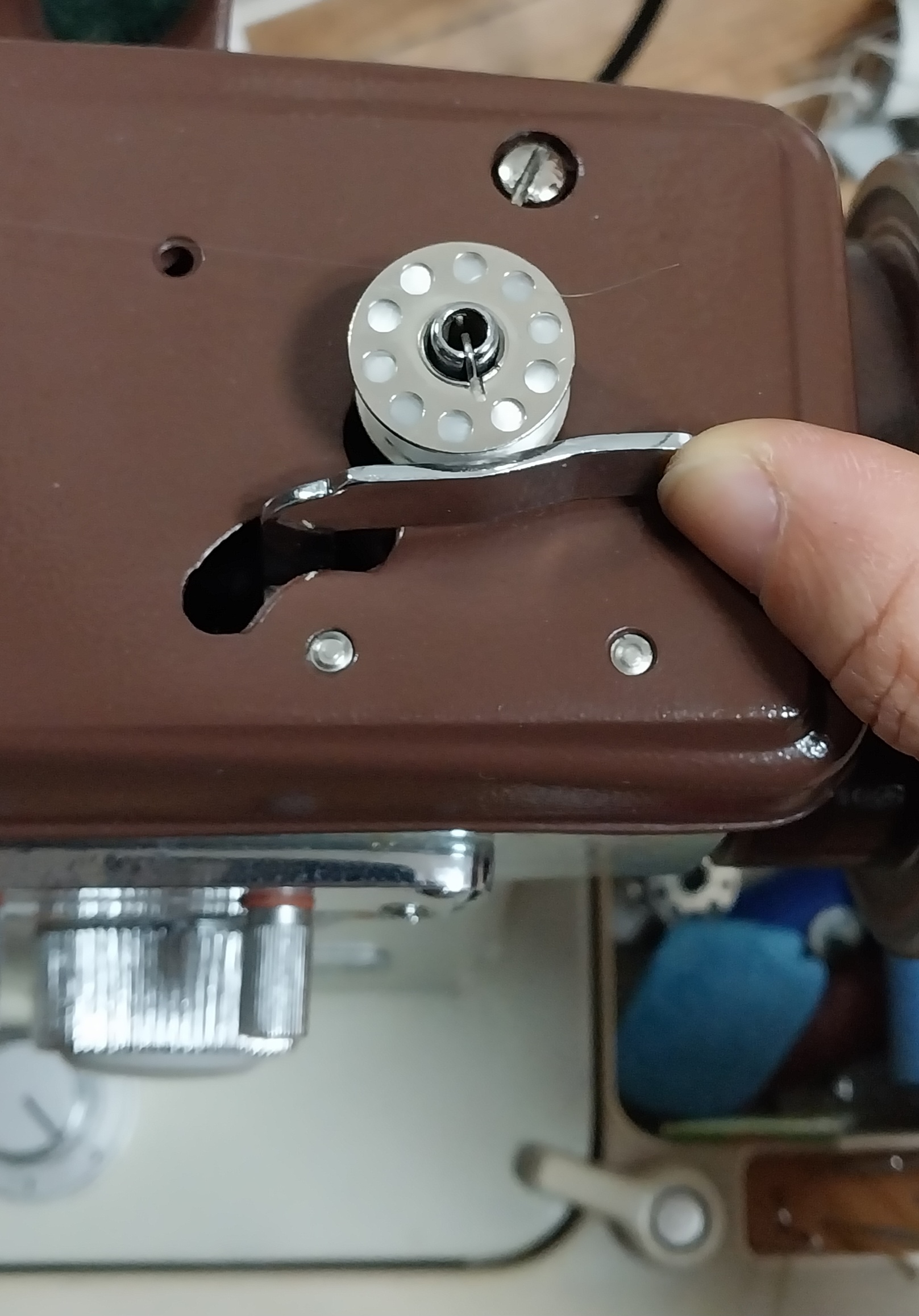 풀리를 화살표 방향으로 풀면, 바늘은 안움직이고, 밑실만 감긴다.