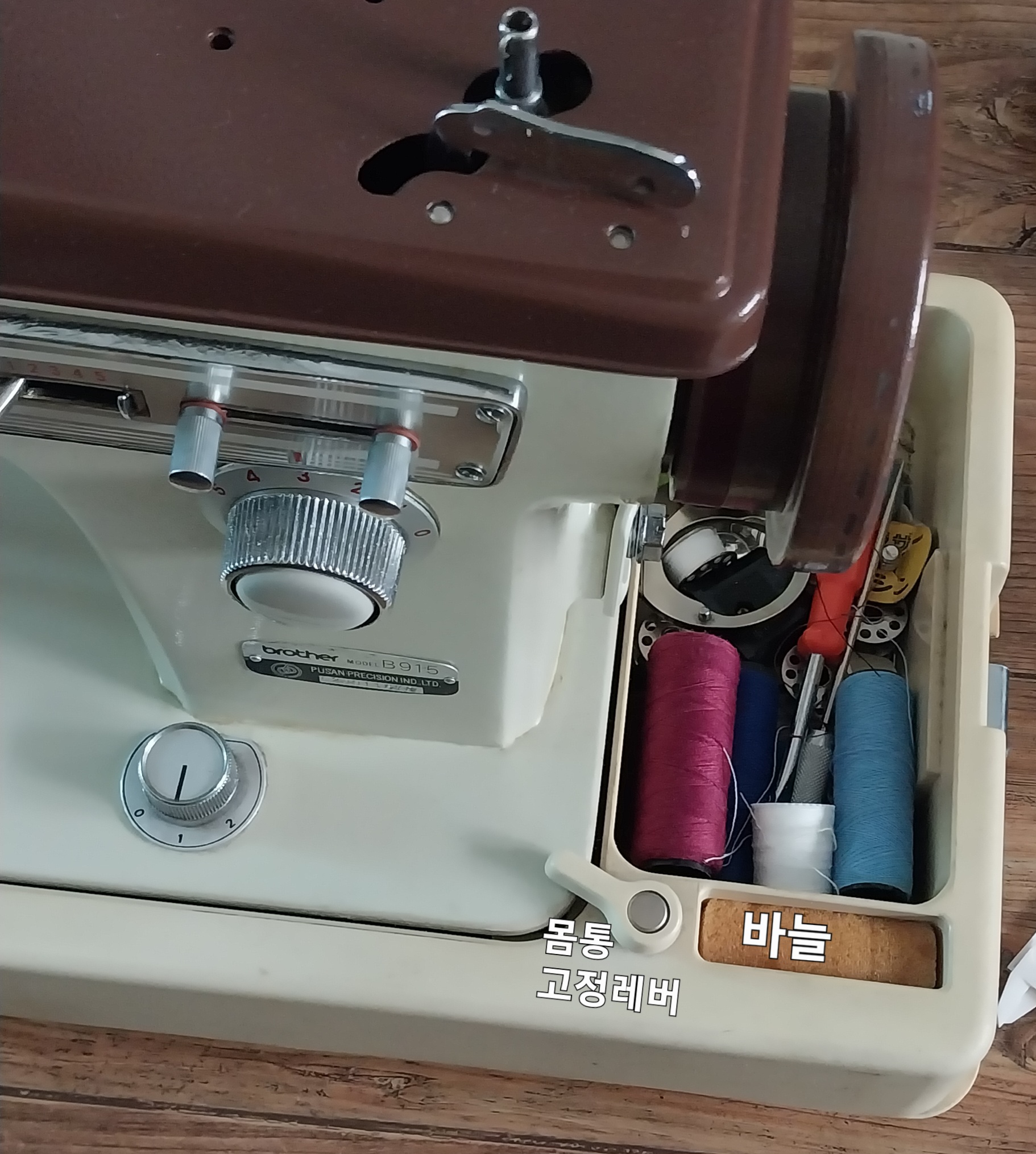 밑실 감을때는 오른쪽 풀리를 풀어야한다.