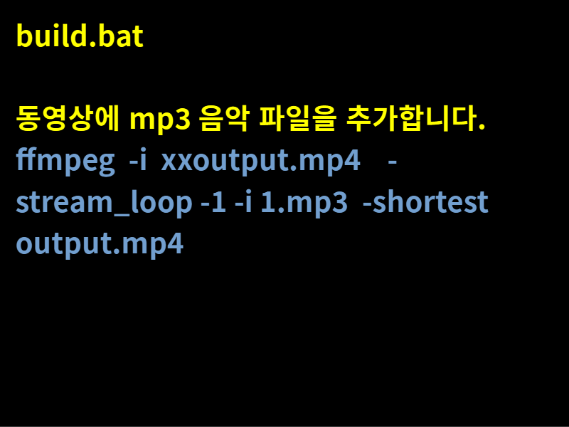 ffmpeg -i xxoutput.mp4 -stream_loop -1 -i 1.mp3 -shortest output.mp4