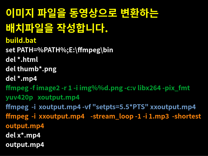 이미지 파일을 동영상으로 변환하는 배치파일을 작성합니다.