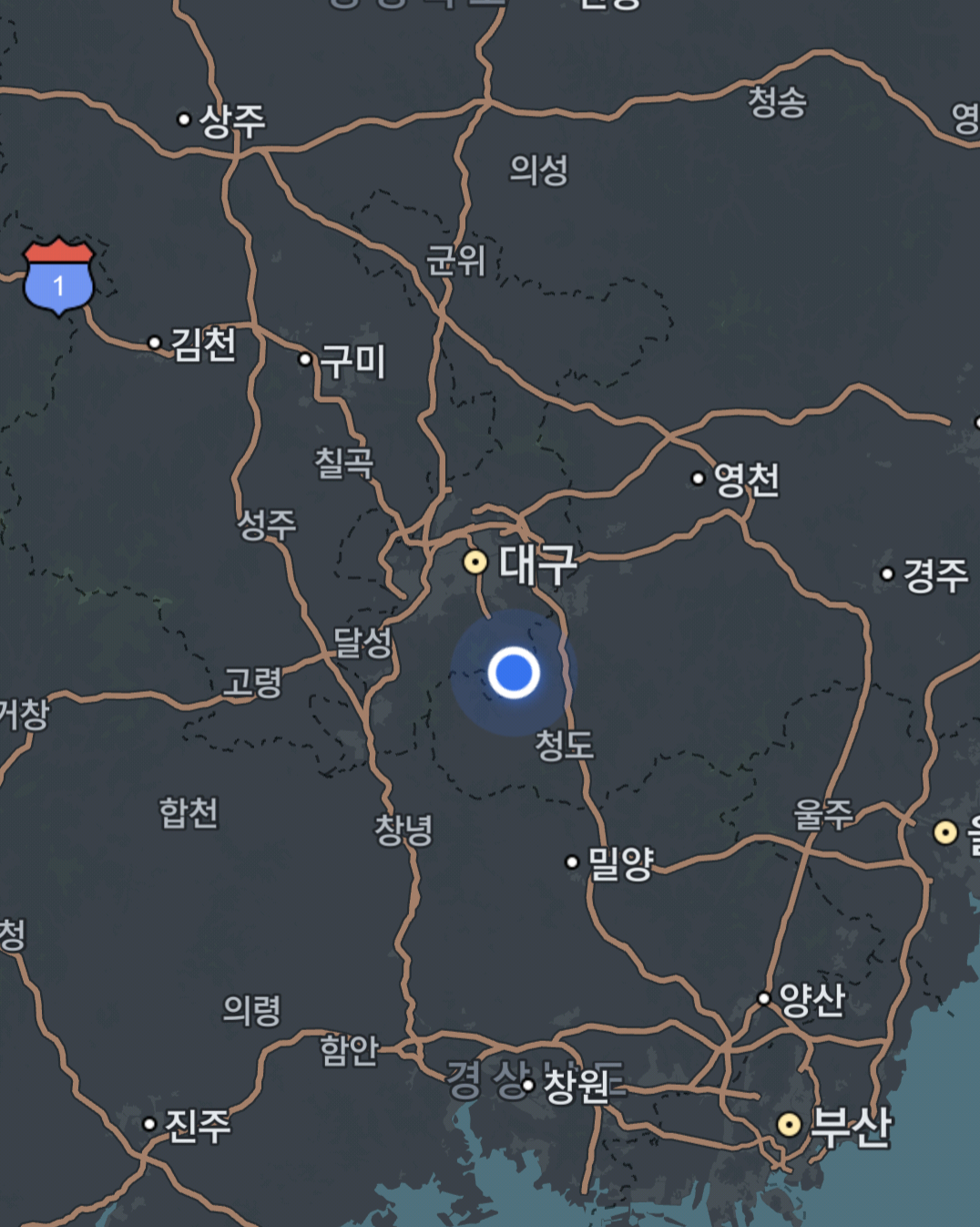 대구에서 청도방향 중간쯤