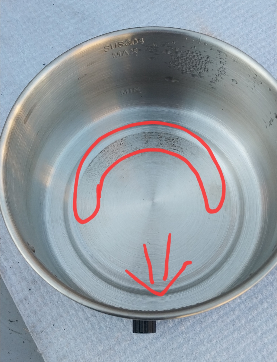 반달처럼 생긴 발열체 열린 방향으로 기울여놓아야 물이 다 빠집니다.