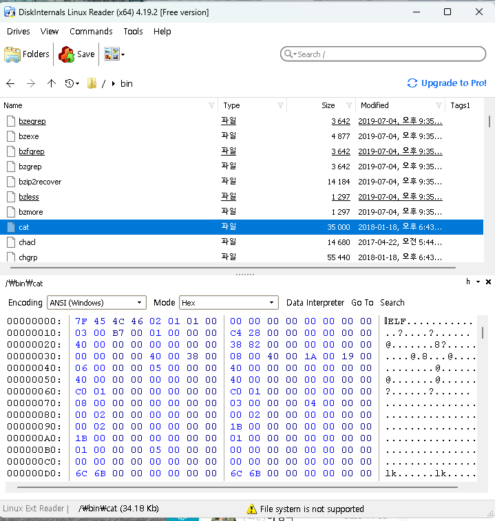파일 내용도 보이고, HEX로도 보이네요. (좋네요)