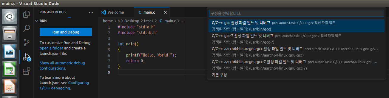 우분투에서 Visual Studio Code를 사용하여 C 프로그램을 작성하는 방법입니다.