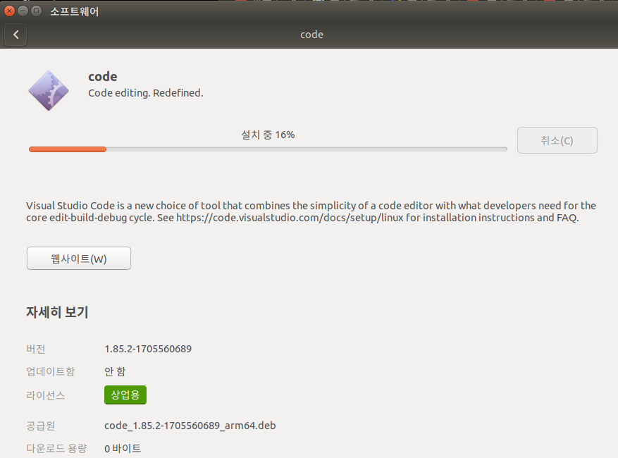 - 우분투 터미널에서 다음 명령어를 사용하여 Visual Studio Code를 설치합니다.
