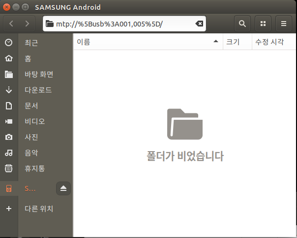 핸드폰을 USB연결하니 빈 창이 뜸
