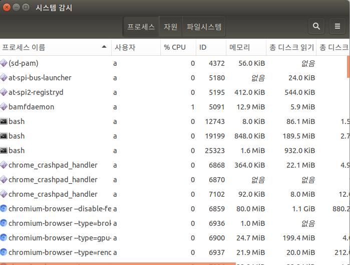 gnome-system-monitor (System Monitor , 시스템 모니터 )