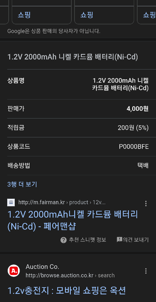 정격: 1.2V, 2000 mAh