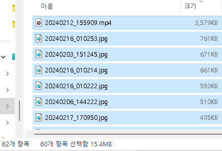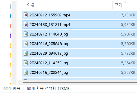 그냥 이대로 두기엔 아쉬워서 확 줄여보기로 했습니다. 사진과 동영상의 크기를 각각 절반으로 줄였습니다. 단, 사진은 크기가 1MB 이상인 것들만 줄였습니다. 이 과정은 10초도 걸리지 않았습니다.