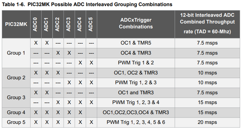PIC32MK시리즈는 ADC6개로 20 msps까지 된다.