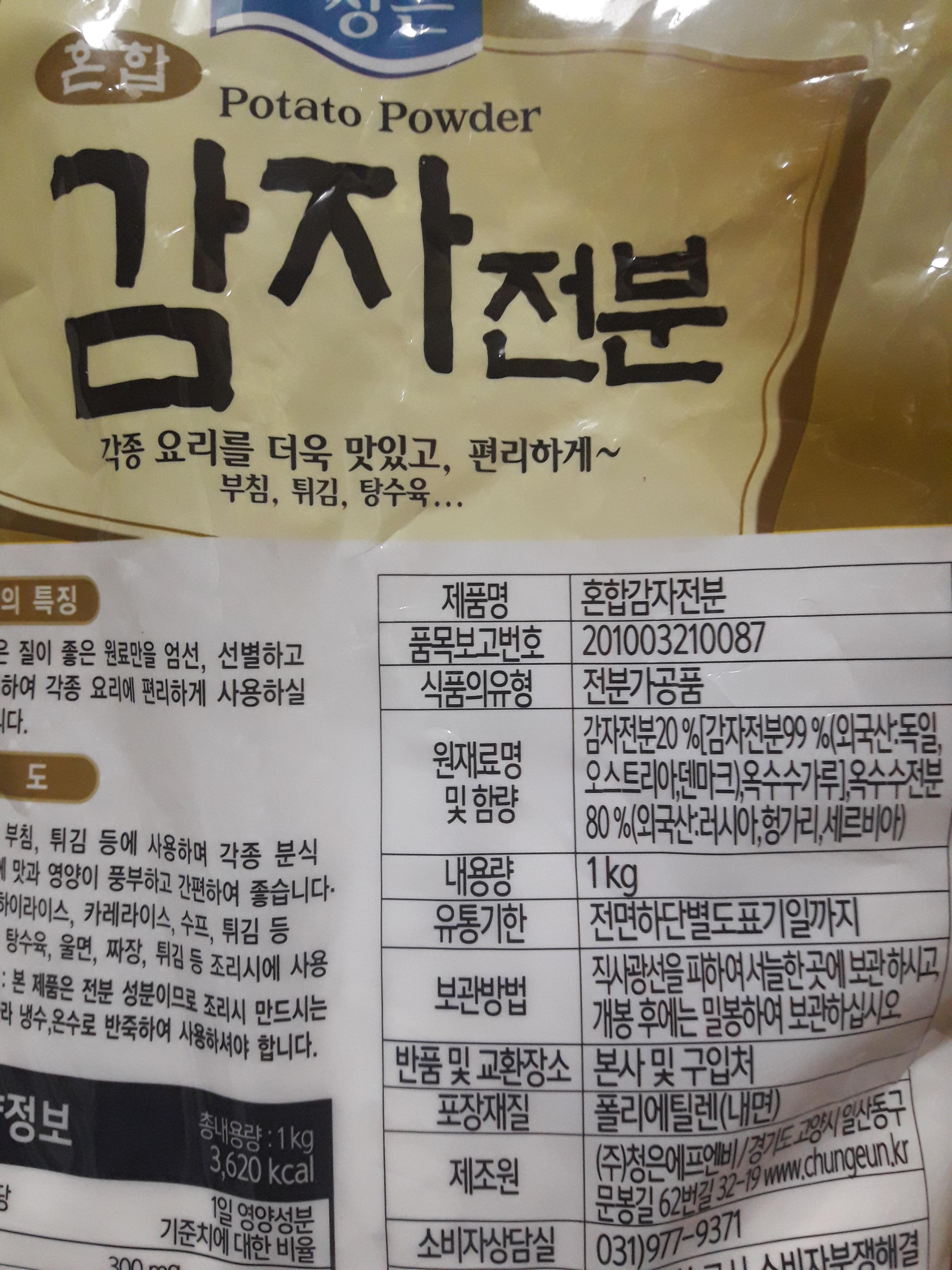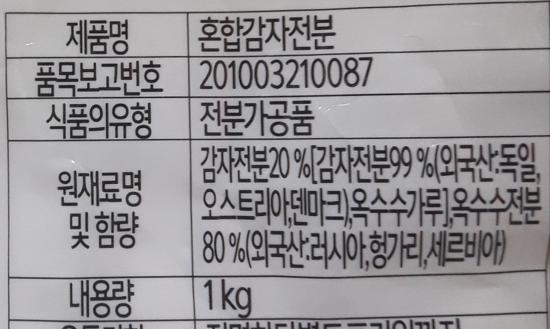 옥수수전분이 80%인데, 감자전분이라고 팝니다.