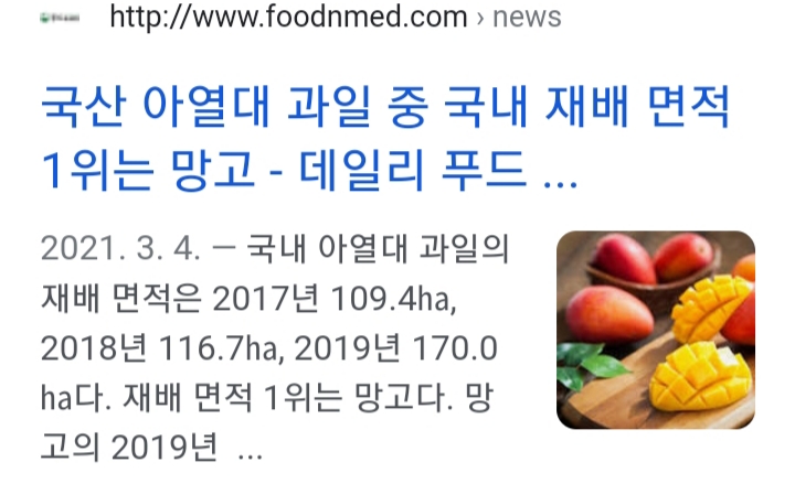 국산 아열대 과일 중 국내 재배 면적 1위는 망고 - 데일리 푸드 ...