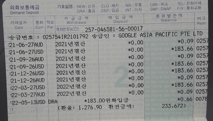 이 달러 통장은 이자가 안붙는 통장이네요...